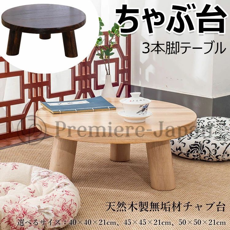 ちゃぶ台 本格ちゃぶ台 3本脚テーブル 直径40cm 45cm 50cm 無垢材チャブ台 ちゃぶだい ミニテーブル 小型テーブル 丸型テーブル 円卓 座卓 和風テーブル 和室テーブル 天 レトロカラー