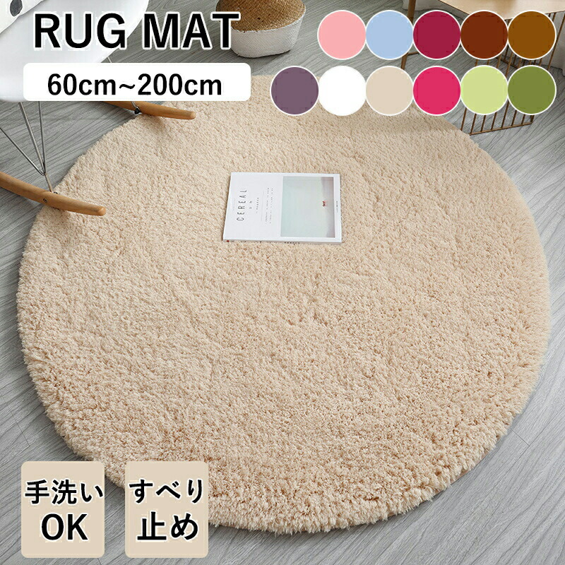 ラグ 円形 ラグマット カーペット 丸型 丸いラグ 円型ラグ 60cm 80cm 100cm 120cm 140cm 160cm 200cm 洗える シャギー 柔らかい 滑り止め ウォッシャブル 厚手