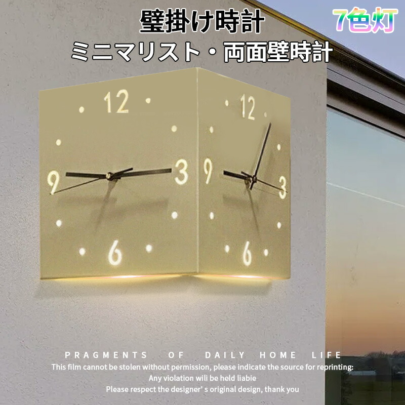 壁掛け時計 両面壁時計 7色灯 壁掛け時計 両面壁時計 インテリア 静音 壁掛け 時計 コーナー時計 北欧 シンプル ナチュラル リビング ダイニング 時計壁掛け時計 壁掛け 7色灯