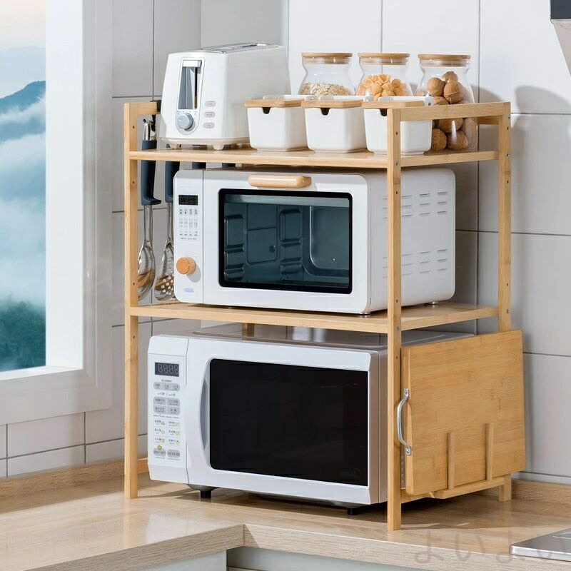 木製 キッチン収納棚 レンジ上ラック 電子レンジ棚 レンジラック