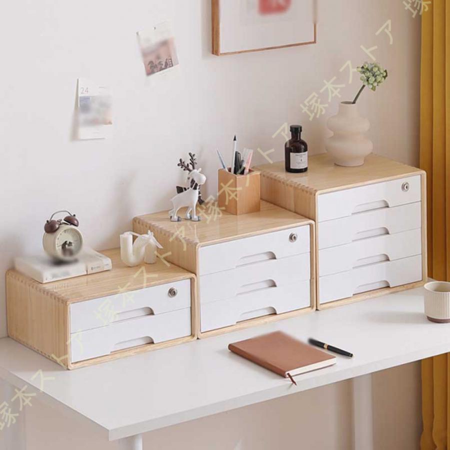 鍵付き ミニチェスト 木製 卓上 収納ボックス 引き出し 事務用品 オフィス 文房具収納 机上収納 机上用品 寝室 頑丈 耐用 天然木の風合い 居間