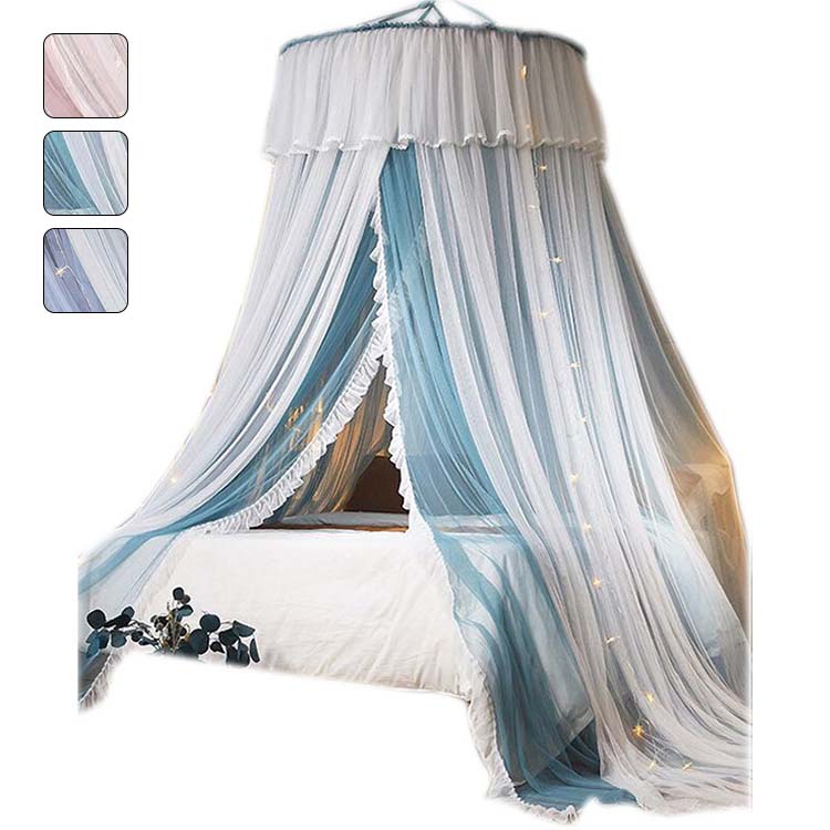 天蓋カーテン モスキートテント 夏用 ダブルカーぜ 蚊帳 防蚊 レースフリル 着地式 インテリア 防虫