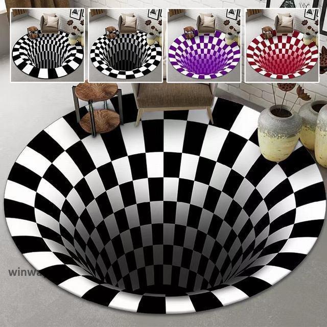 玄関マット 3 錯覚トリックアート 円形 6060 新作 室内用玄関マット 室内 屋内 北欧 ラグマット リビング 洗える モダン おしゃれ カーペット