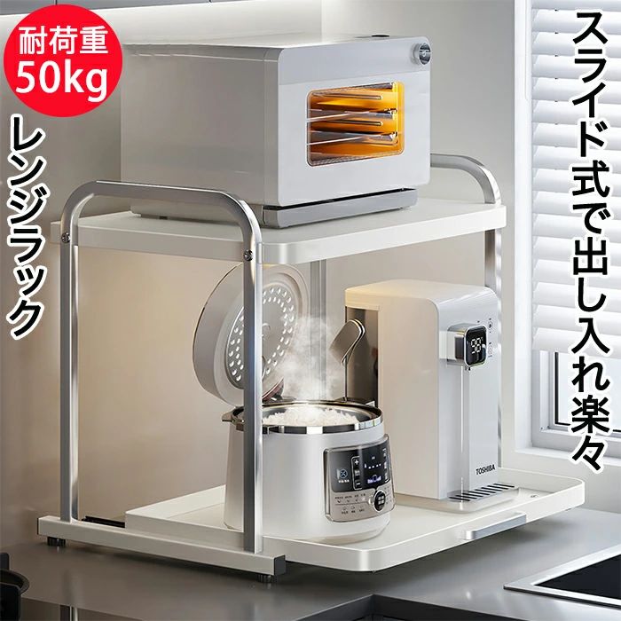 レンジラック 幅60cm 幅50cm 大型レンジ対応 レンジ台 2段 卓上 冷蔵庫上 スリム キッチン 収納 引き出し レンジ上に置く 安定感 調味料置き レンジ上収納 調味料収納 小物がけ