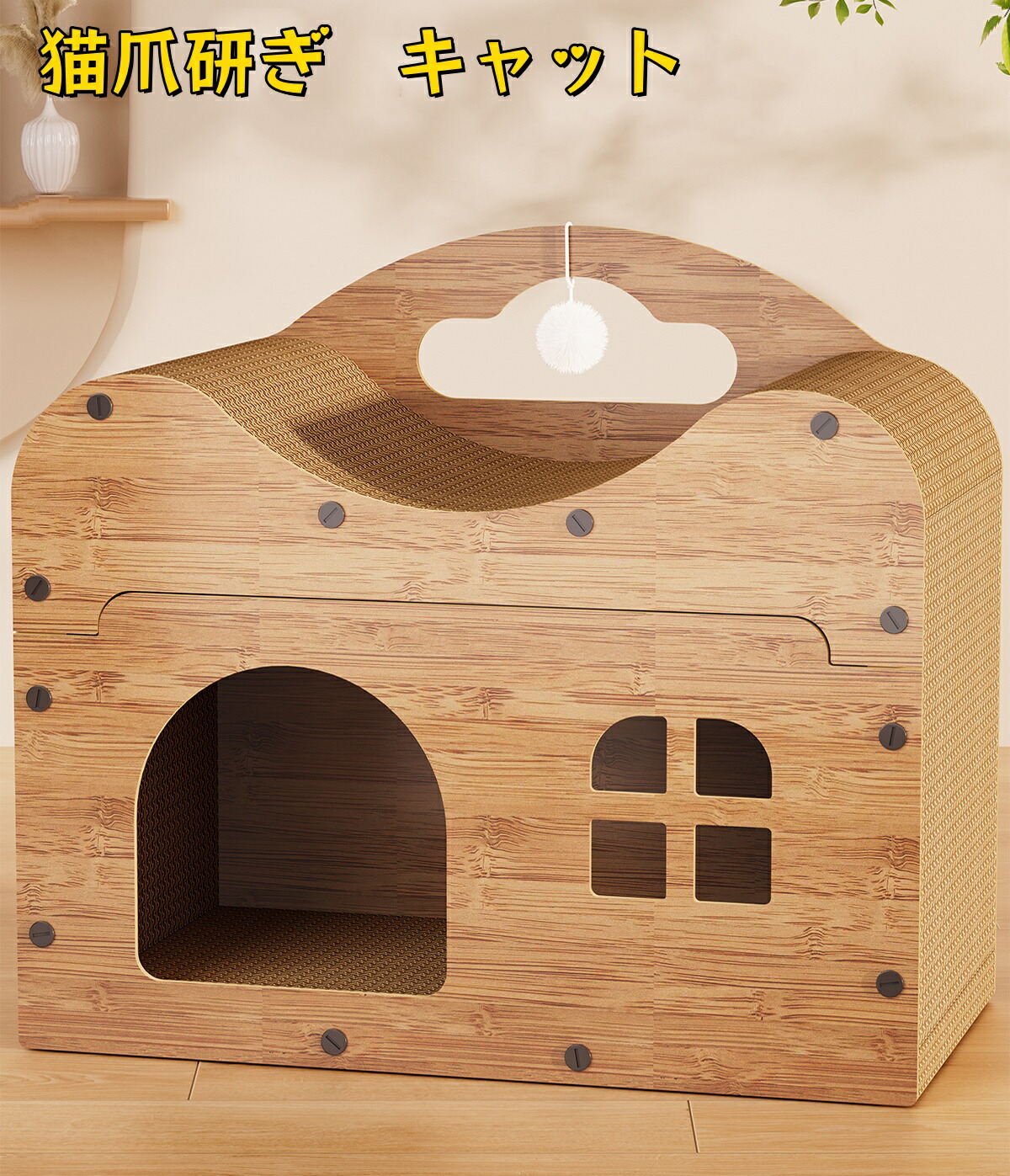 猫 爪研ぎ 段ボールハウス キャットハウス 爪とぎ 猫爪研ぎ 猫の爪研ぎ キャット 組立簡単 ペットベッド ダンボール 隠れ家 猫窓 猫の爪とぎベッド ボックス 可愛い 耐摩耗 通気 両面 耐久性