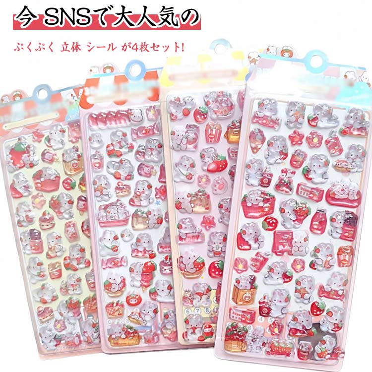 4枚セット ボンボンシール 立体 シール クリア ドロップシール 3D 女子 ご褒美シール ぷっくり 浮き彫りクリスタル エポキシ樹脂 動物 手帳シール トレカケース ネイル ゆめかわ