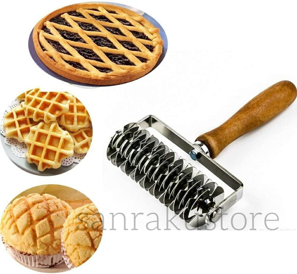 ステンレススチール 生地ラティスローラー カッター 木製ハンドル付き 製菓用ツール クッキー パイ ピザ パン ペストリー クラスト 生地カット 成形用 ベーカリー用品 お菓子作り