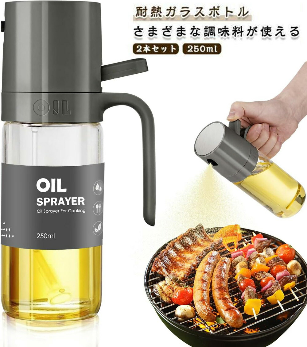オイルスプレー オリーブオイル 250ml 耐熱ガラス オイルボトル 霧吹き スプレー オイル噴射管付属フィルター 片手でも使用可能 液だれしない 垂れない 小さい オイルポット 食用油 キッ 料理用