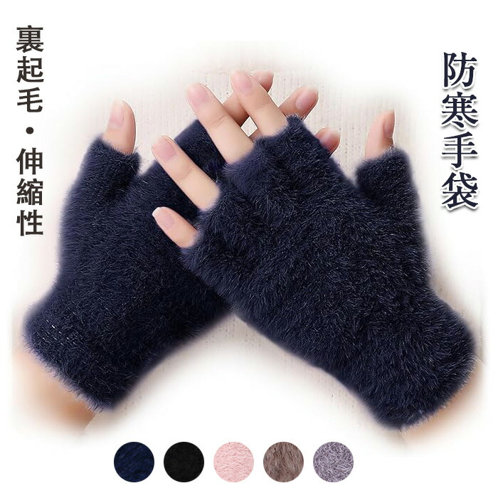 防寒手袋 手袋 レディース 指なし 【裏起毛で極暖・半指で自由!スマホももラクラク・伸縮性 動きやすい・肌に優しい】 指なしグローブ 防寒