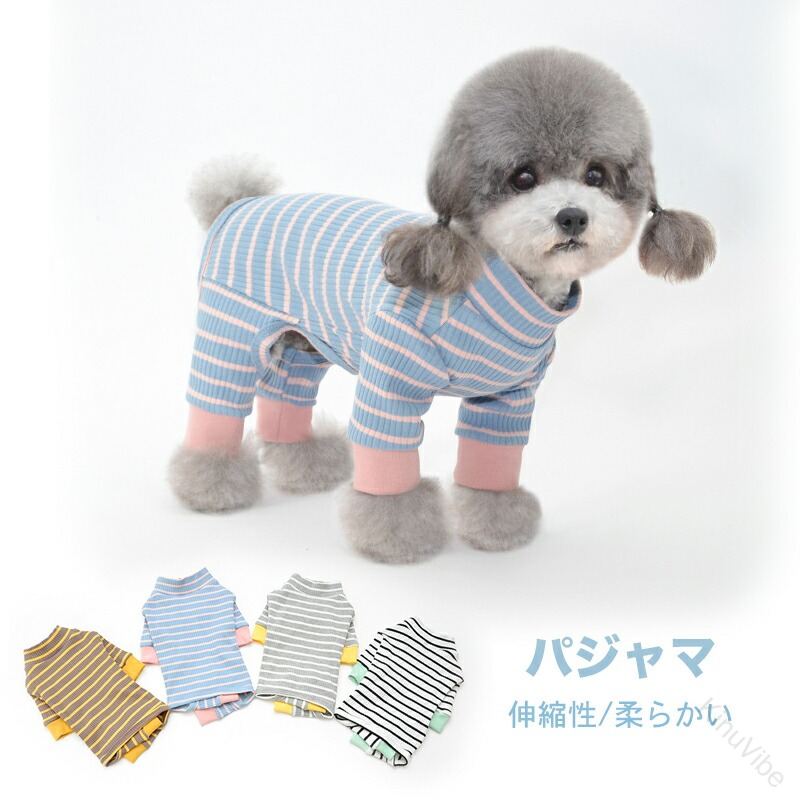 犬パジャマ 犬服 カバーオール 長袖 長ズボン ドッグウェア ペット服 犬用 つなぎ 重ね着 犬部屋着 防寒着 ハイネック ハーネス ジャンパー 冬 ボーダー柄 オシャレ 防寒 お散歩 可愛い
