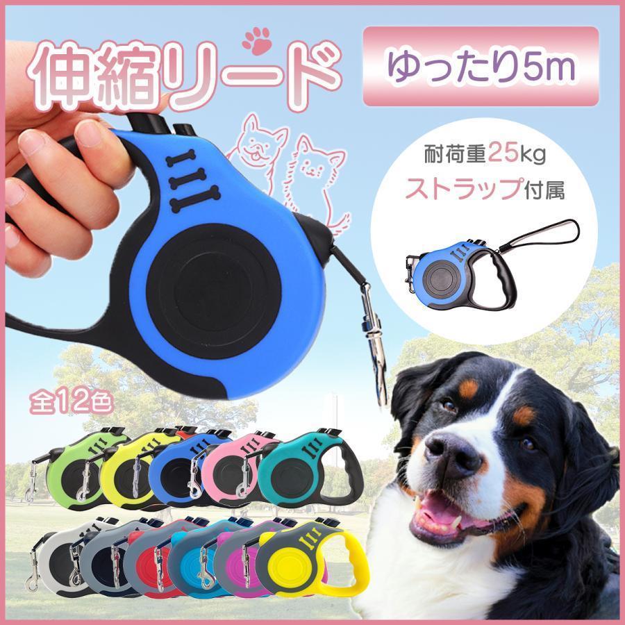 犬 リード 犬用リード 犬用 伸縮 おしゃれ 軽い 小型犬 中型犬 長い 5 伸びる ハーネス 外れ防止 フレキシ