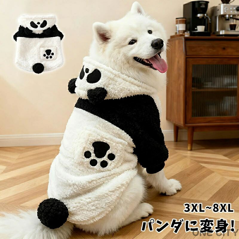 ペット服 犬服 パンダ パーカー フード付き ふわふわ パンダに変身 裏起毛 中型犬 大型犬 ペットウェア ドッグウェア ジャケット 防寒 秋 冬 犬用品 ペット用品 あったか 小型犬 長袖