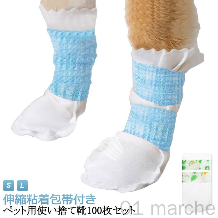 100枚入 犬 靴 使い捨て 50足 伸縮粘着包帯付き 滑り止め ドッグブーツ 犬用靴 猫用 肉球保護 足元汚れ防止 通気性 不織布 柔らか軽量 ペット用フットカバー 靴カバー 防水仕様 犬用靴下