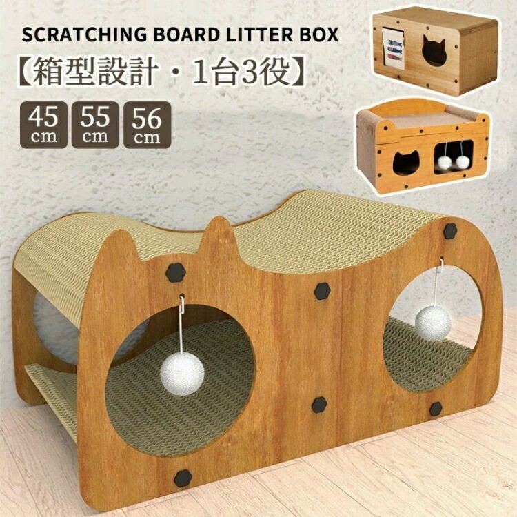 高密度強化ダンボール製の大型二重層猫爪とぎハウス。耐久性に優れ、とぎカスが出にくく、家具の破壊防止と愛猫のストレス解消をサポートします。