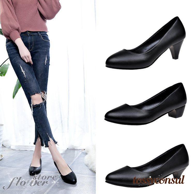 パンプス 痛くない 歩きやすい 甲高 幅広 ローヒール 黒