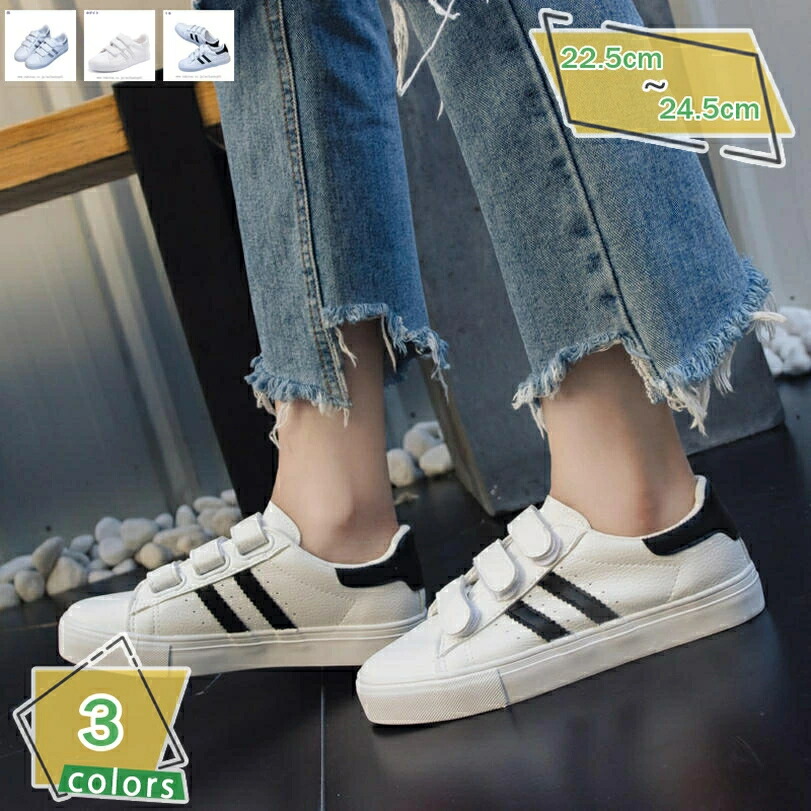 レディースベルクロスニーカー ベルクロ スニーカー ぺたんこ ホワイト ブラック 白 黒 女性 シューズ 靴 フラット ローカットスニーカー かわいい 大人 フラットシューズ マジックテープ 可愛い
