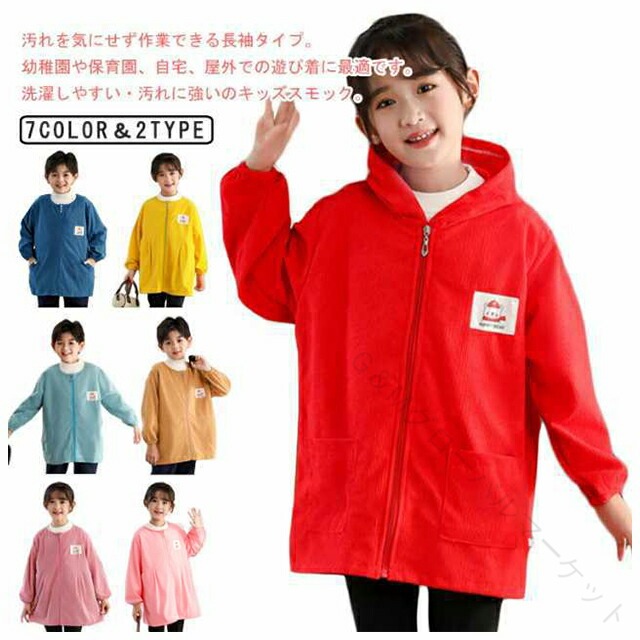 子供用スモック 撥水加工エプロン 長袖スモック コーデュロイ素材 前開きデザイン お食事エプロン 砂遊び用スモック 幼稚園用プレイウェア フード付きスモック 汚れ防止エプロン 外遊び 保育園用スモック