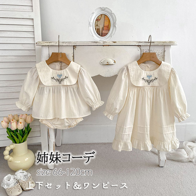 ベビー服 姉妹コーデ 姉妹リンクコーデ ワンピース 赤ちゃん 長袖 無地 姉妹リンク ゆったり 上下セット 66 73 80 90 100 110 120cm 春秋 キッズ 子供服 子ども服 子 女児