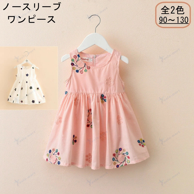 ワンピース ベビー ワンピ 子供服 ノースリーブ 女の子 ハイウエスト ガーリー フリル丸襟 キッズ 花柄 女児 刺繍 こども服 夏 おしゃれ お出掛け着 通気 通園 通学 発表会 結婚式 入 可愛い