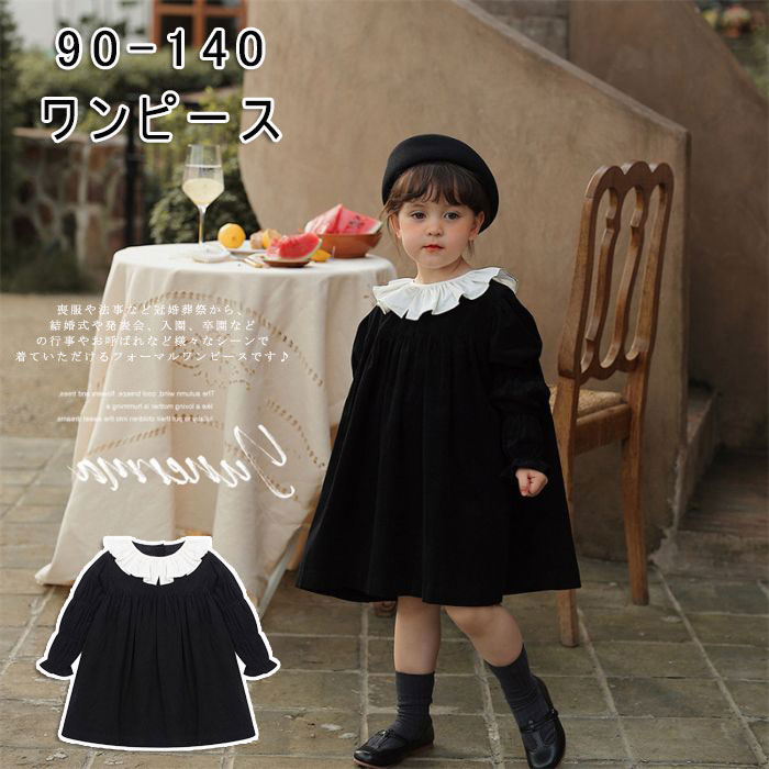 ワンピース キッズ ベビー 入学式 卒業式 女の子 フォーマル 長袖 黒 ドレス 結婚式 冠婚葬祭 礼服 喪服 ブラック 子供服 ジュニア服 通園 春