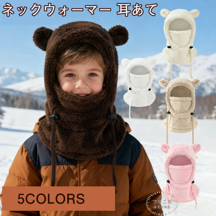 フードつき ネックウォーマー 子供用 帽子 秋冬 かわいい くま耳 男の子 女の子 フリース 目出し帽 ふわふわ 防寒 防風 ファーハット キッズ スキー 雪遊び 防寒具 冬 3~10歳 か 秋