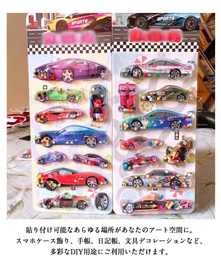 4枚セット ウォーターシール ぷっくり シール ぷくぷくシール ぷっくりシール 可愛いシール 車 プチドロップ 立体シール 男の子 女の子 装飾用 DIY用 3Dシール 3D 手作り キ 手帳