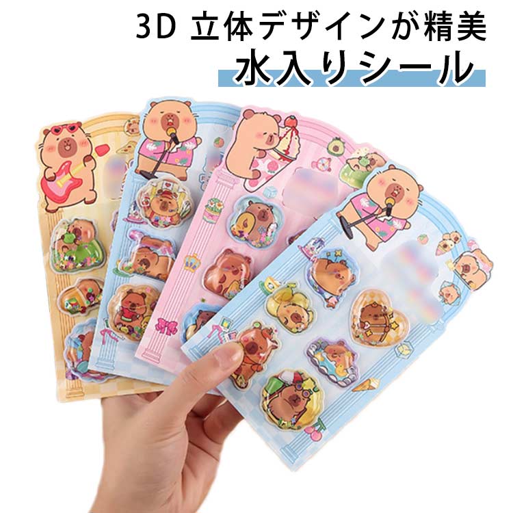 水入りシール 3Dステッカー ぷくぷくシール シール カピバラさん 可愛い ぷっくりシール シール帳 ご褒美シール 小学生 装飾用 DIY用 立体シール 3D ウォーターシール ノート 手帳 女の子
