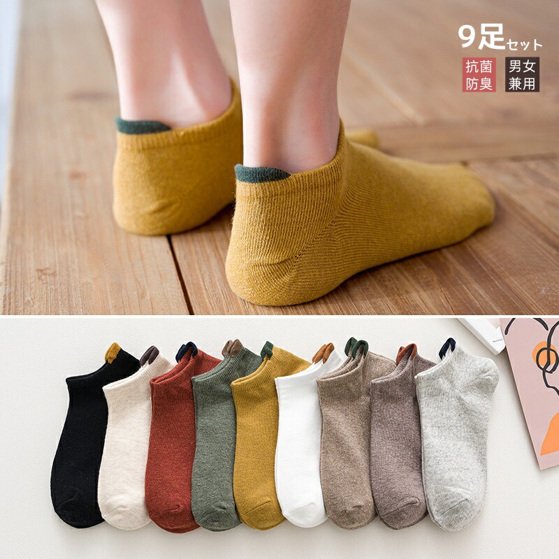 9足セット 男女兼用 くるぶし丈 スニーカーソックス ショートソックス 靴下 無地 シンプル おしゃれ かわいい 脱げにくい 蒸れにくい 通気性 吸汗速乾 春 夏 秋 冬 通学 スポーツ カジュ 通勤