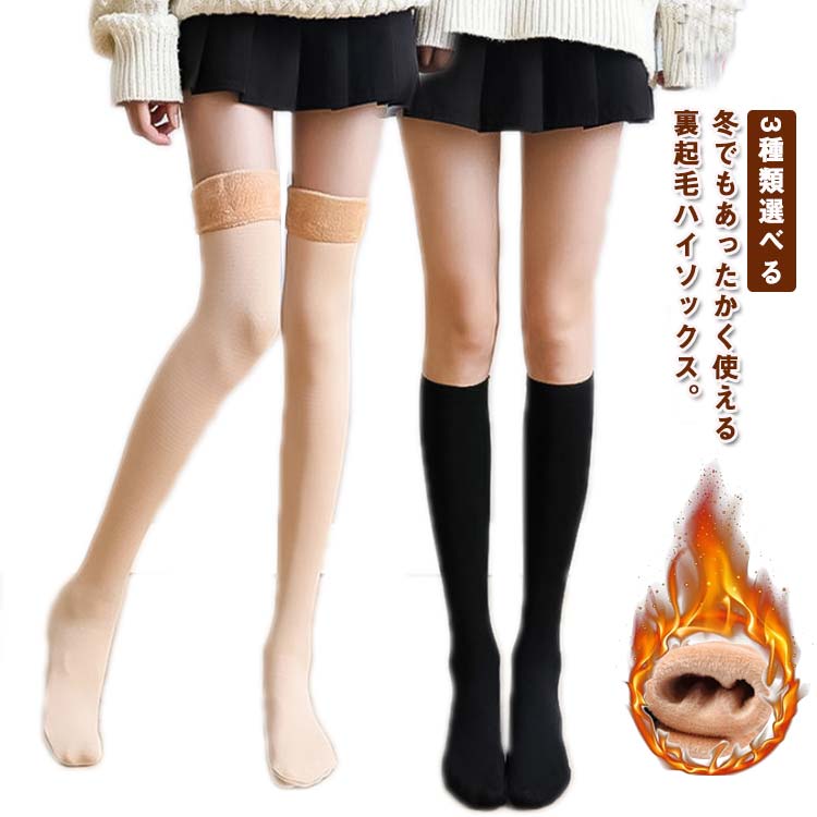 ソックス レディース あったか裏起毛ソックス ストッキングソックス もこもこ 4足 8足入り ハイソックス 靴下 無地 3種類選べる ロングソックス 膝上 発熱 厚手 対策 膝下