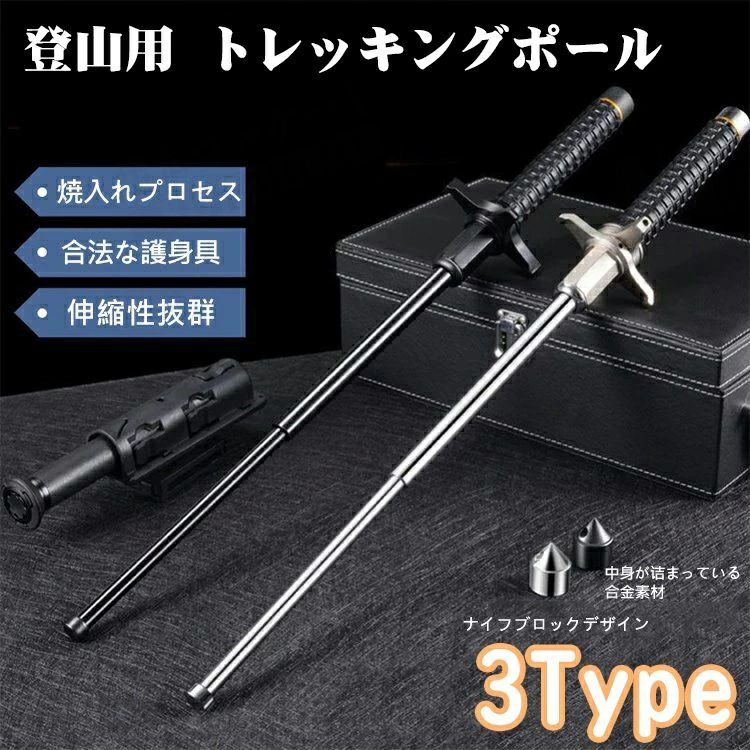 三段 護身用 多機能トレッキングポール アウトドア 自己防衛ペン トレッキング キャンプ