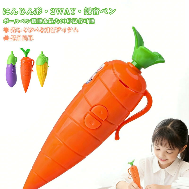 にんじんペン ボールペン 音声録音ペン 2in1 録音とボールペン機能付き クリップ付き かわいいボールペン にんじん型 とうもろこし型 愛らしい文房具 子供や学生へのプレゼントに最適 なす型