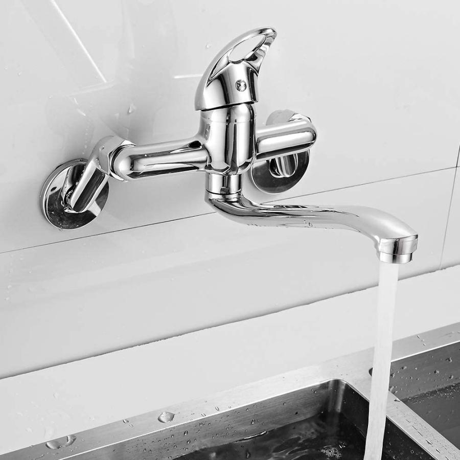 キッチン蛇口 壁付き 混合水栓 シングルレバー 浴室用水栓 バス水栓 180°首回り 泡沫吐水 ツーホール式 キッチン 冷 温 切り替え 水栓