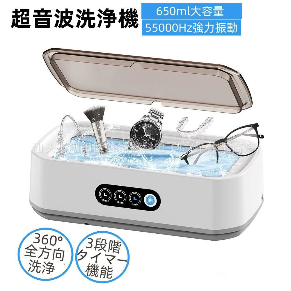 超音波洗浄機 メガネクリーナー 洗浄機 小型超音波洗浄器 650ml大容量55000Hz強力振動 3段階タイマー機能 眼鏡洗浄機 超音波クリーナー 軽量 小型家用 腕時計バンド 指輪 貴金属 化粧道具
