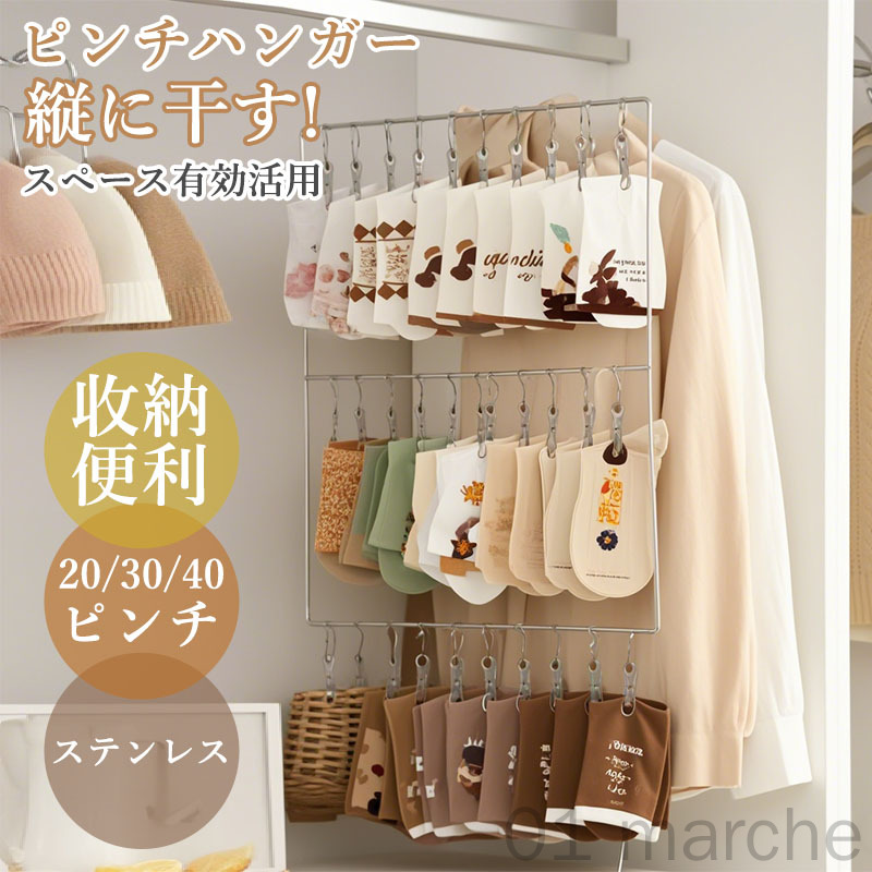 ピンチハンガー 縦型ハンガー 下着 靴下 壁掛け 2段3段4段選べる 吊り下げ収納 20ピンチ30ピンチ40ピンチ 回転フック付き 物干しハンガー 室内物干し 部屋干し用 洗濯物干し 洗濯ハンガー