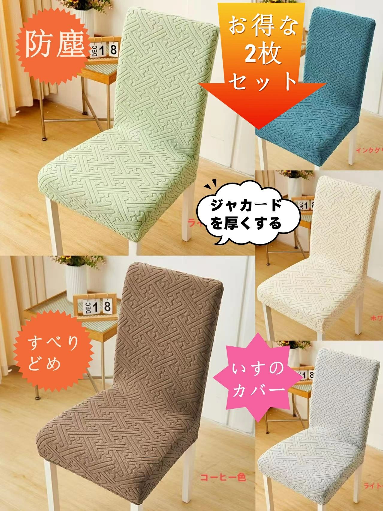 2枚セット 現代シンプル椅子カバー厚手ジャカード椅子カバー弾力性全包連体防塵ダイニング椅子カバー滑り止め