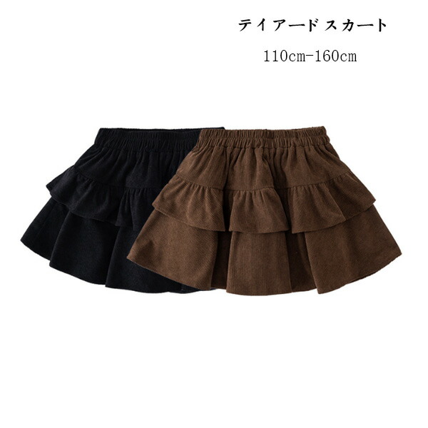 韓国子供服 女の子 ティアードスカート ブラック ブラウン スカート 卒園式 入学式 卒業式 コーデュロイ キッズ 発表会 七五三 おしゃれ 春着 冬着 通学着 通 秋着