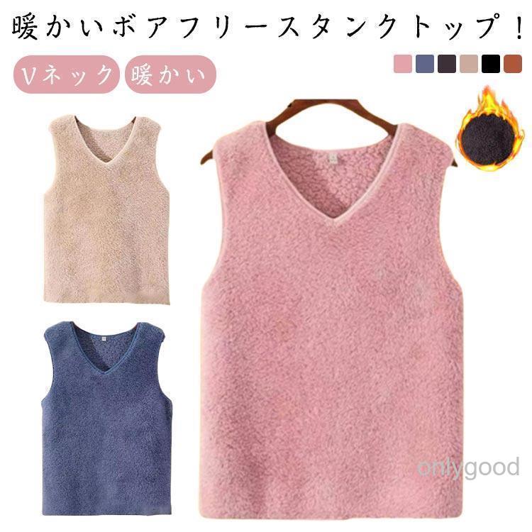 ボアフリース ベスト 防寒 レディース ノースリーブ トップス もこもこ タンクトップ アンダーウェア Vネック 防寒着 保温 インナー 厚手 極暖