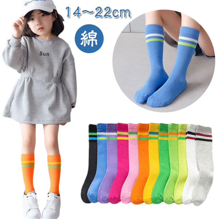 ライン ハイソックス キッズ 女の子 男の子 靴下 ソックス 子供靴下 ロング丈 ボーダーソックス 春 夏 秋 冬 子ども ベビー ジュニア 子供服 伸縮性 綿 コットン 通気性 通園 通学 柔らかい