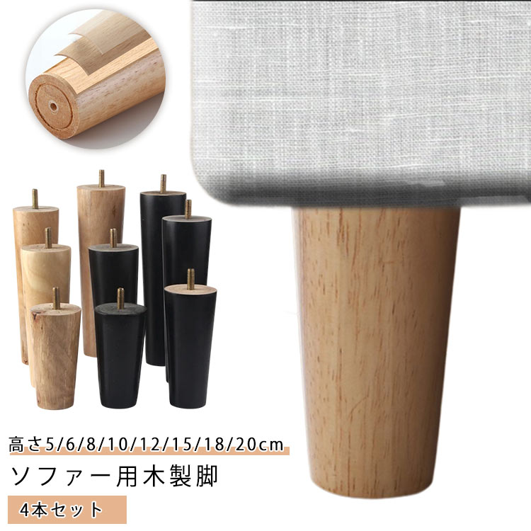 置き換え ソファー用木製脚 木製脚 高さ5 6 8 10 12 15 18 20cm かさ上げ台 ソファ キャビネット足 脚 交換可能 継ぎ脚 テーブル 4本セット 家具 継ぎ足