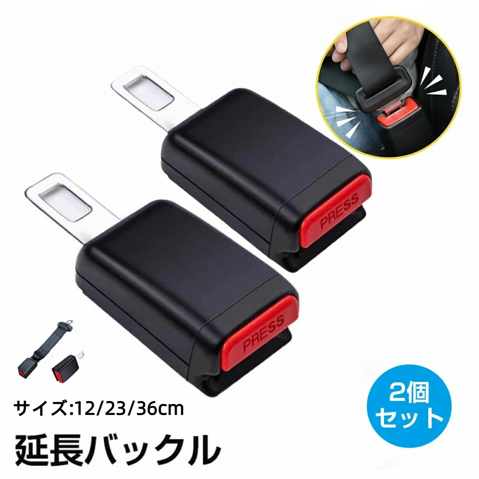 車用小物 2 点 フンタッチ 補助 延長バックル【12/23/36を選べる】 快適 楽々 マタニティ 小学生 運転席用 助手席用 車用小物 簡易型 カー用品 調整器 持ち運び