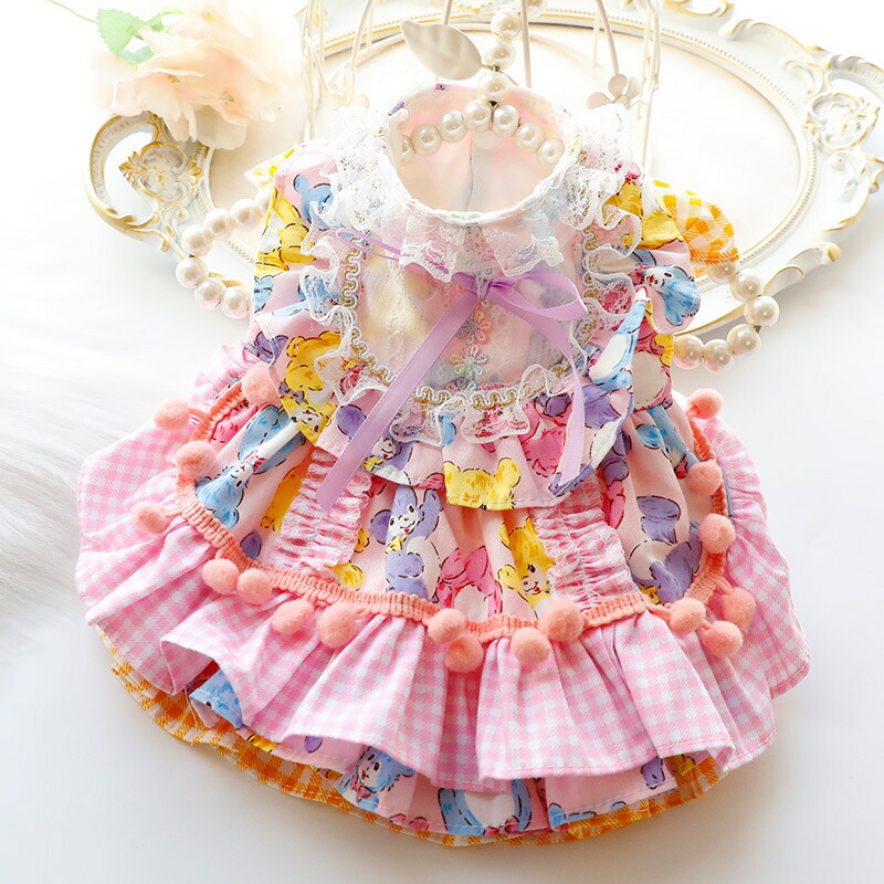 ペット服 犬リード 犬首輪リード付き ワンピース ドレス 可愛い パーティー お姫様 犬 猫 お散歩 お出掛け 柔らかい ペットウェア 服 かわいい ドッグウェア