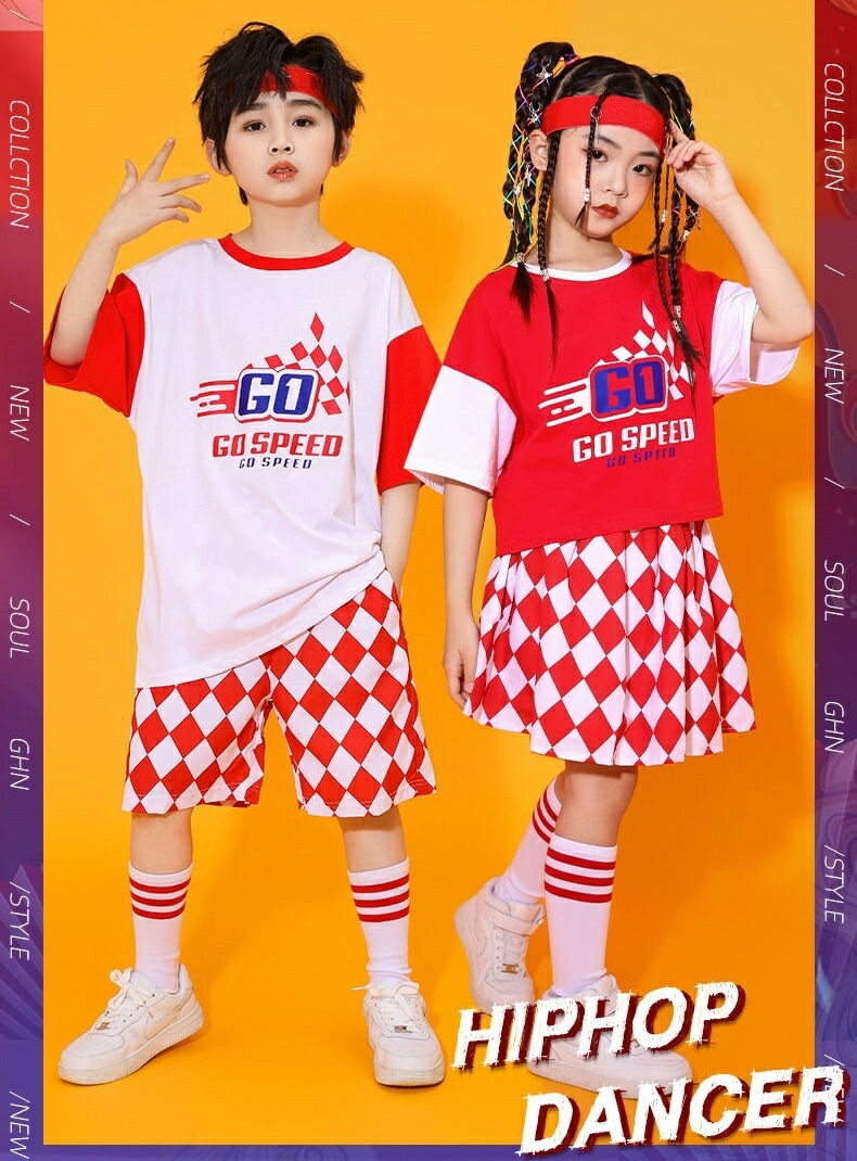 キッズ ダンス 衣装 キッズダンス衣装 セットアップ HIPHOP ヒップホップ 半袖tシャツ へそ出し スカート 女の子 男の子 子供 2点セット応援団 人気 新作 キッズダンス