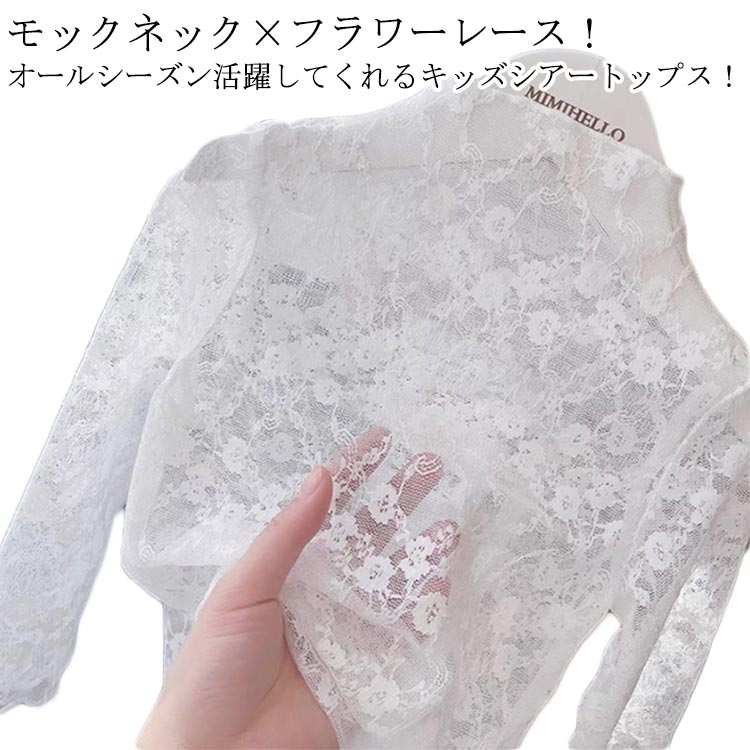 シアートップス レース キッズ 女の子 ハイネック レーストップス 花柄 インナーシャツ カットソー 重ね着 可愛い 重ね着 チュール 透け感 かわいい