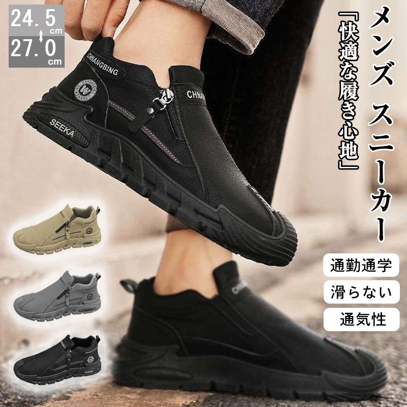 スニーカー メンズ 防水 カジュアルシューズウォーキングシューズ 安全靴 作業靴 ファスナー付き コンフォート スポーツ 軽量 歩きやすい 通勤 通学 中学生 厚底 滑り止め設計 耐摩耗性 疲れない