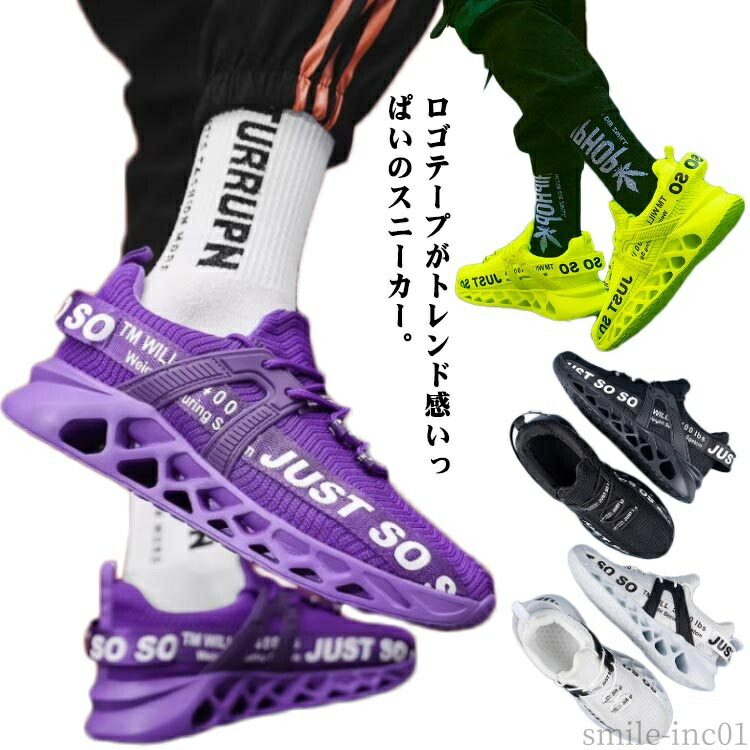 男女兼 ロゴテープ 運動靴 スポーツシューズ ジョギングシューズ ユニセックス おしゃれ ランニングシューズ フライニット 軽量