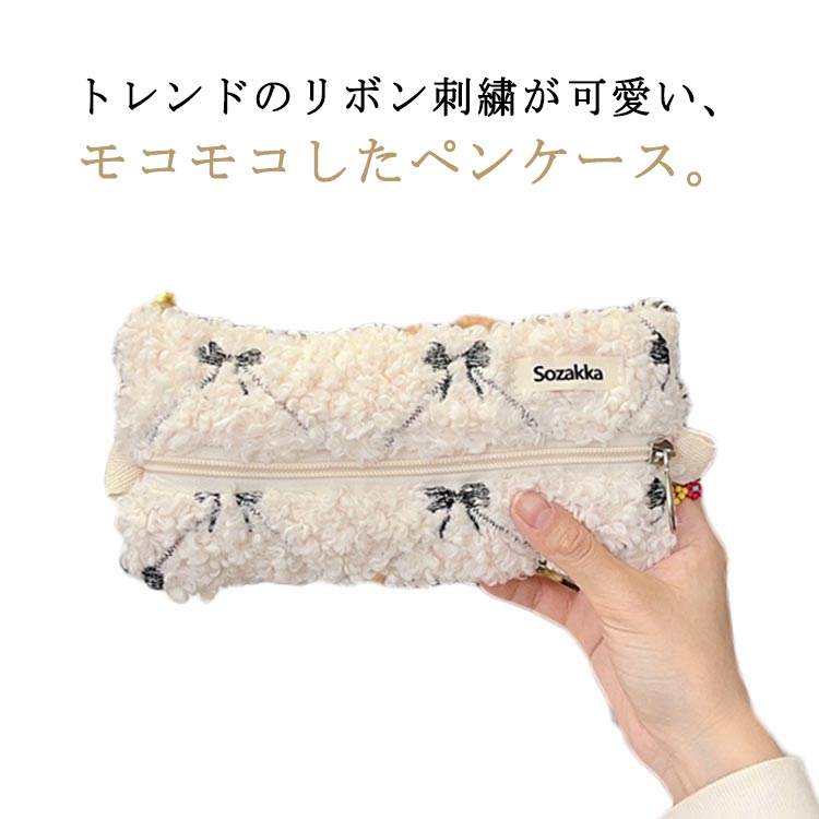 筆入れ リボン刺繍 高校生 もこもこ 大容量 小物 筆箱 かわいい ペン入れ ペンケース 化粧ポーチ ふわふわ ペンポーチ 中学生 化粧品収納 ポーチ クリスマス ギフト 韓 コスメポーチ