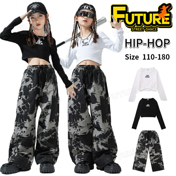 ダンス衣装 キッズ ヒップホップ 女の子 へそ出しトップス タイダイ柄 パンツ 長ズボン 子供 女の子 ステージ衣装 団体服 発表会 演出服 韓国