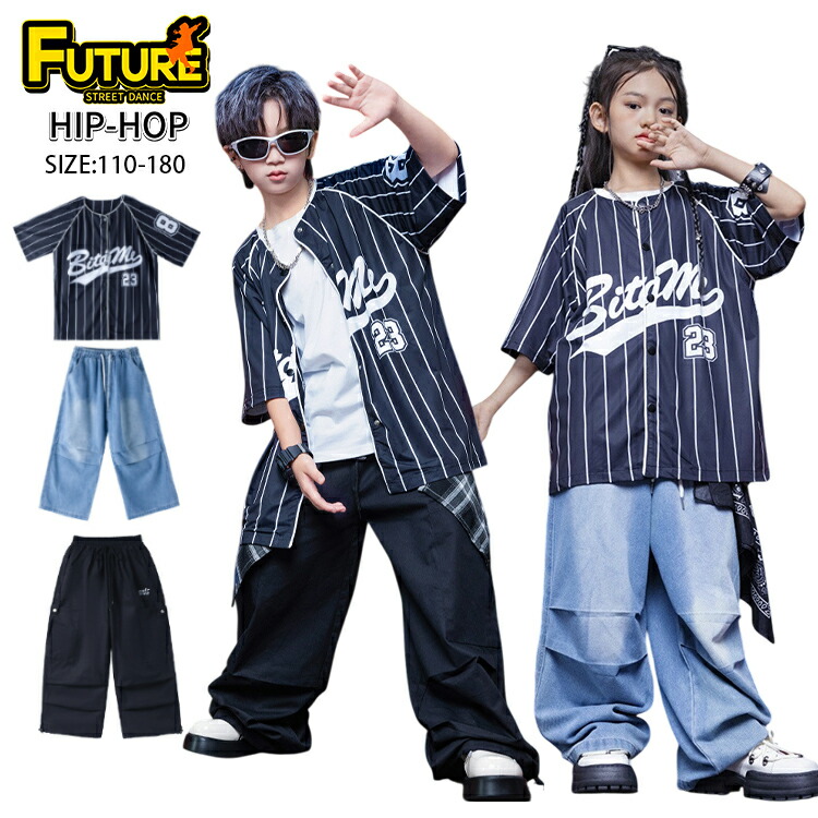ベースボールシャツ ダンス 衣装 キッズ デニムパンツ 女の子 セットアップ 男の子 ヒップホップ 韓国 -衣装 ジャズダンス かっこいい ジュニア 子供 イベント 発表会 110 180