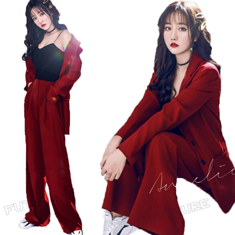 赤 ダンス衣装 セットアップ 大人 k-pop 衣装 ワイドパンツ スーツセット 韓国 K-POP レディース 長袖 赤パンツ ジャズダンス ヒップホップ ジャケット