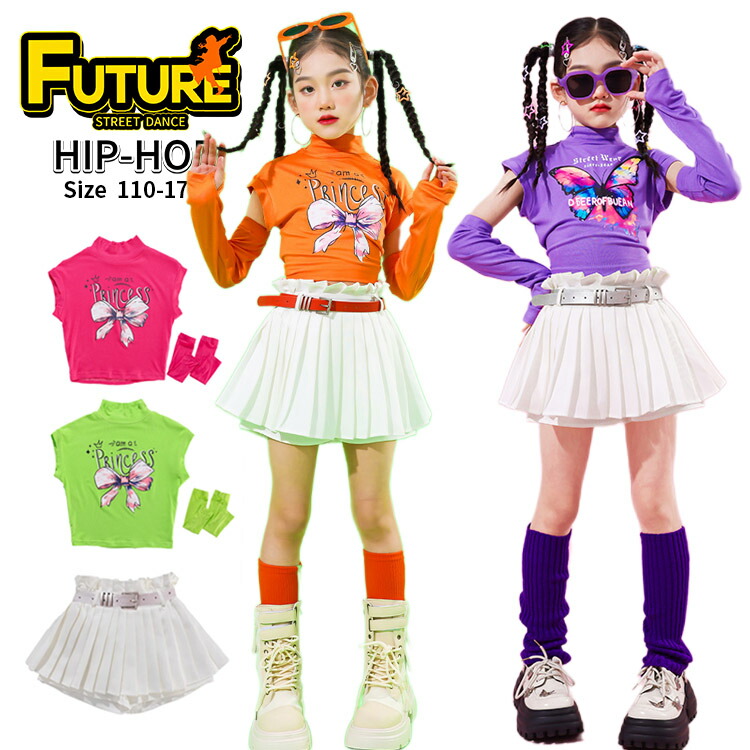 白 キュロット キッズ ダンス 衣装 へそ出し トップス 女の子 セットアップ 橙 紫シャツ 青 黄色 チアダンス衣装 韓国 -衣装 かっこいい ヒップホップ 応援団 イベント 110 170